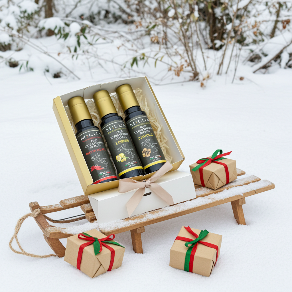 Unser exklusives Olivenöl-Geschenkset enthält drei elegante 100-ml-Flaschen, die individuell nach Geschmack kombiniert werden können.